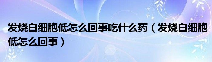 大家好,linda来为大家解答以上的问题。发烧白细胞低怎么回事吃什么药,发烧白细胞低怎么回事很多人还不知道,现在让我们一起来看看吧!