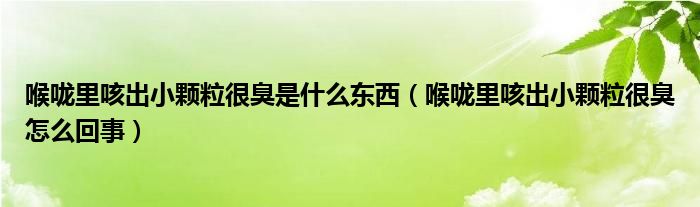 大家好,linda来为大家解答以上的问题。喉咙里咳出小颗粒很臭是什么东西,喉咙里咳出小颗粒很臭怎么回事很多人还不知道,现在让我们一起来看看吧!