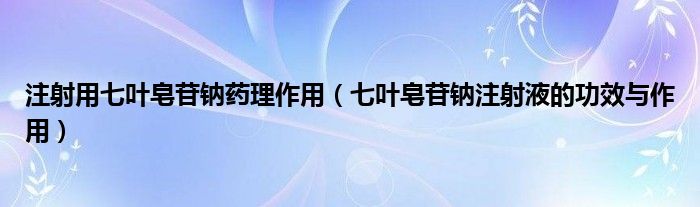 大家好,linda来为大家解答以上的问题。注射用七叶皂苷钠药理作用,七叶皂苷钠注射液的功效与作用很多人还不知道,现在让我们一起来看看吧!