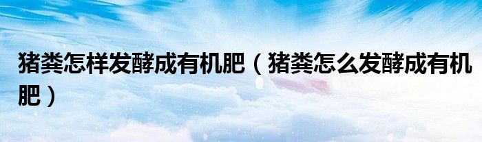 大家好,小晋来为大家解答以下问题,关于猪粪怎样发酵成有机肥,猪粪怎么发酵成有机肥很多人还不知道,今天让我们一起来看看吧!