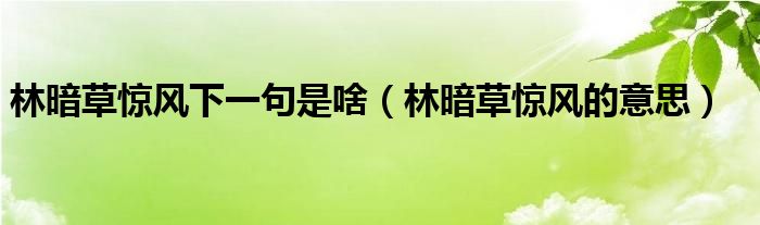 大家好,小晋来为大家解答以下问题,关于林暗草惊风下一句是啥,林暗草惊风的意思很多人还不知道,今天让我们一起来看看吧!