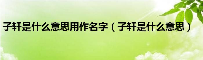 大家好,小晋来为大家解答以下问题,关于子轩是什么意思用作名字,子轩是什么意思很多人还不知道,今天让我们一起来看看吧!