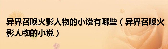 大家好,小晋来为大家解答以下问题,关于异界召唤火影人物的小说有哪些,异界召唤火影人物的小说很多人还不知道,今天让我们一起来看看吧!