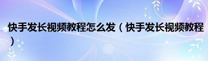 大家好,小晋来为大家解答以下问题,关于快手发长视频教程怎么发,快手发长视频教程很多人还不知道,今天让我们一起来看看吧!