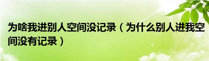 为啥我进别人空间没记录(为什么别人进我空间没有记录)