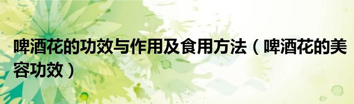 大家好,小晋来为大家解答以下问题,关于啤酒花的功效与作用及食用方法,啤酒花的美容功效很多人还不知道,今天让我们一起来看看吧!