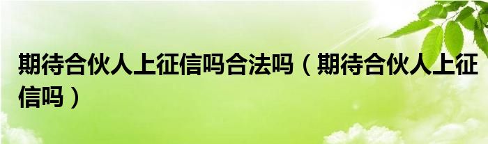 期待合伙人上征信吗合法吗(期待合伙人上征信吗)
