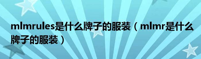 大家好,小晋来为大家解答以下问题,关于mlmrules是什么牌子的服装,mlmr是什么牌子的服装很多人还不知道,今天让我们一起来看看吧!