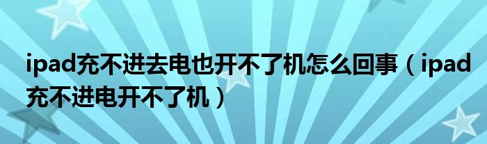 大家好,小晋来为大家解答以下问题,关于ipad充不进去电也开不了机怎么回事,ipad充不进电开不了机很多人还不知道,今天让我们一起来看看吧!