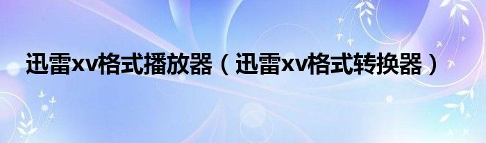 迅雷xv格式播放器(迅雷xv格式转换器)
