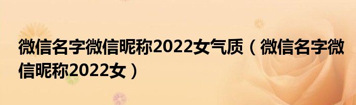 微信名字微信昵称2022女气质(微信名字微信昵称2022女)