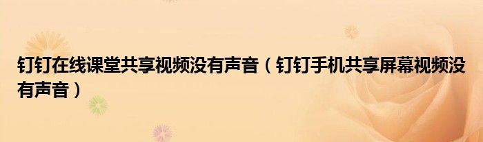 大家好,跳跳为你解答以上问题。钉钉在线课堂共享视频没有声音,钉钉手机共享屏幕视频没有声音这个问题很多人还不知道,现在让我们一起来看看吧!