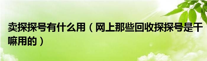 大家好,跳跳为你解答以上问题。卖探探号有什么用,网上那些回收探探号是干嘛用的这个问题很多人还不知道,现在让我们一起来看看吧!