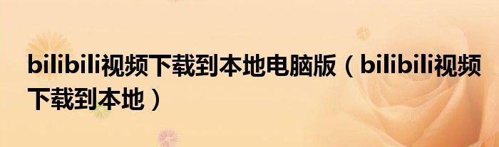 bilibili视频下载到本地电脑版(bilibili视频下载到本地)
