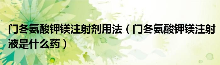 大家好,linda来为大家解答以上的问题。门冬氨酸钾镁注射剂用法,门冬氨酸钾镁注射液是什么药很多人还不知道,现在让我们一起来看看吧!