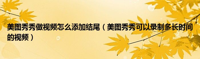 大家好,跳跳为你解答以上问题。美图秀秀做视频怎么添加结尾,美图秀秀可以录制多长时间的视频这个问题很多人还不知道,现在让我们一起来看看吧!