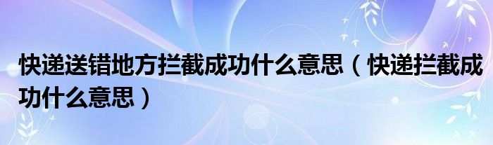 大家好,小叶为你解答以上问题。快递送错地方拦截成功什么意思,快递拦截成功什么意思这个问题很多人还不知道,现在让我们一起来看看吧!