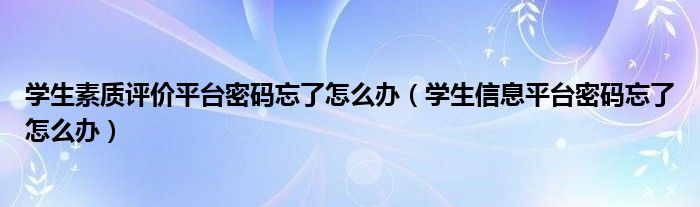 大家好,跳跳为你解答以上问题。学生素质评价平台密码忘了怎么办,学生信息平台密码忘了怎么办这个问题很多人还不知道,现在让我们一起来看看吧!