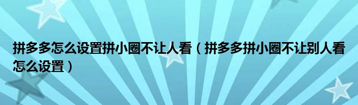 拼多多怎么设置拼小圈不让人看(拼多多拼小圈不让别人看怎么设置)