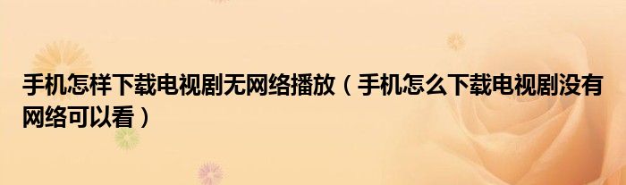 大家好,跳跳为你解答以上问题。手机怎样下载电视剧无网络播放,手机怎么下载电视剧没有网络可以看这个问题很多人还不知道,现在让我们一起来看看吧!