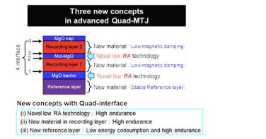 开发的 Quad-interface MTJ (Quad MTJ) - 同类中的首创 - 具有三种新技术:(i) 低 RA 技术,(ii) 记录层中的低阻尼材料,以及 (iii) 稳定的参考层.