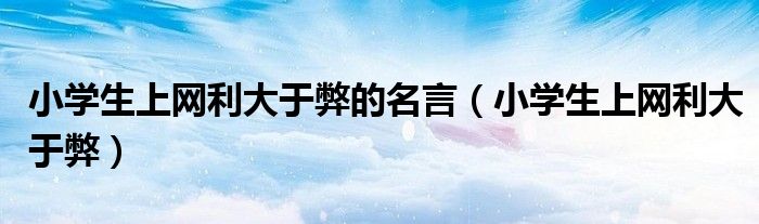 关于小学生上网利大于弊的名言,小学生上网利大于弊这个很多人还不知道,今天菲菲来为大家解答以上的问题,现在让我们一起来看看吧!