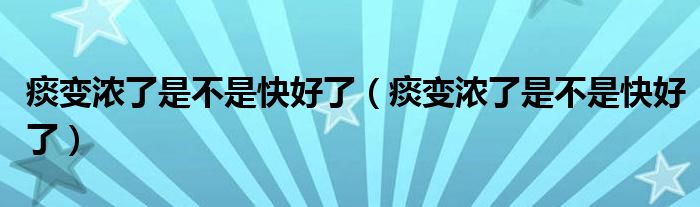 大家好,linda来为大家解答以上的问题。痰变浓了是不是快好了,痰变浓了是不是快好了很多人还不知道,现在让我们一起来看看吧!