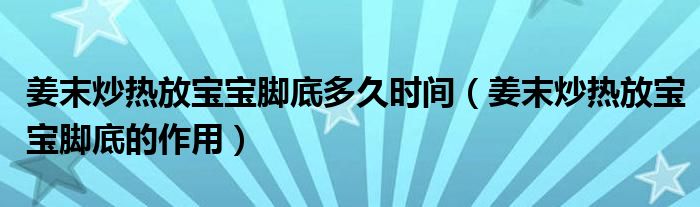 大家好,linda来为大家解答以上的问题。姜末炒热放宝宝脚底多久时间,姜末炒热放宝宝脚底的作用很多人还不知道,现在让我们一起来看看吧!