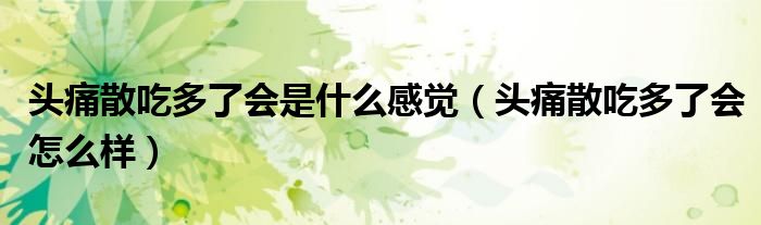 大家好,linda来为大家解答以上的问题。头痛散吃多了会是什么感觉,头痛散吃多了会怎么样很多人还不知道,现在让我们一起来看看吧!