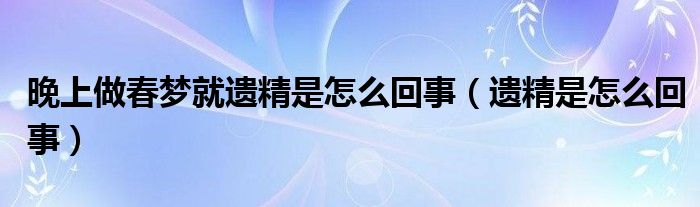 大家好,linda来为大家解答以上的问题。晚上做春梦就遗精是怎么回事,遗精是怎么回事很多人还不知道,现在让我们一起来看看吧!