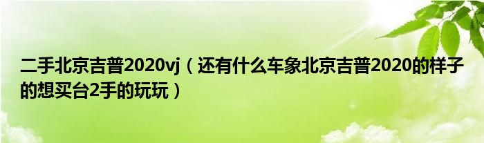 大家好,小常来为大家解答以下问题,对于二手北京吉普2020vj,还有什么车象北京吉普2020的样子的想买台2手的玩玩很多人还不知道,今天让我们一起来看看吧!