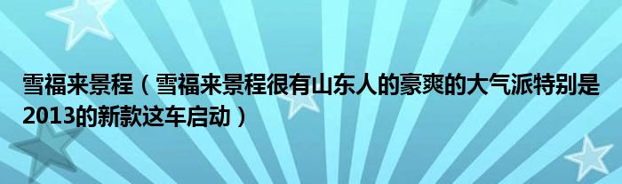 大家好,小常来为大家解答以下问题,对于雪福来景程,雪福来景程很有山东人的豪爽的大气派特别是2013的新款这车启动很多人还不知道,今天让我们一起来看看吧!