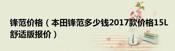 1,本田锋范多少钱2017款价格15L舒适版报价 :目前这款车优惠幅度还算不错,指导价上面优惠8000左右,具体到店内咨询一下为好,地区存在差异,仅供参考