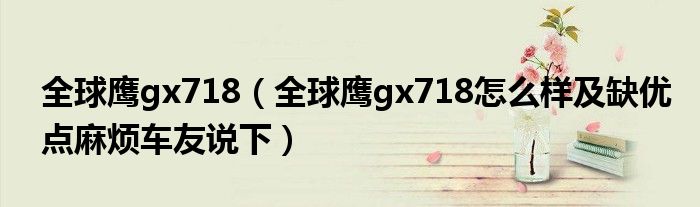 1,全球鹰gx718怎么样 缺优点麻烦车友说下 :我度知道你指的是帝豪718还是全球鹰GX7