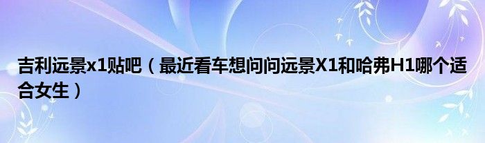 大家好,小常来为大家解答以下问题,对于吉利远景x1贴吧,最近看车想问问远景X1和哈弗H1哪个适合女生很多人还不知道,今天让我们一起来看看吧!