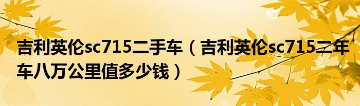 1,吉利英伦sc715二年车八万公里值多少钱 :吉利英伦sc715二年车八万公里如果手动挡标配没有发生过大的事故,手续没有问题,车子没有泡过水的情况下应该在3万左右,具体看实际车况。