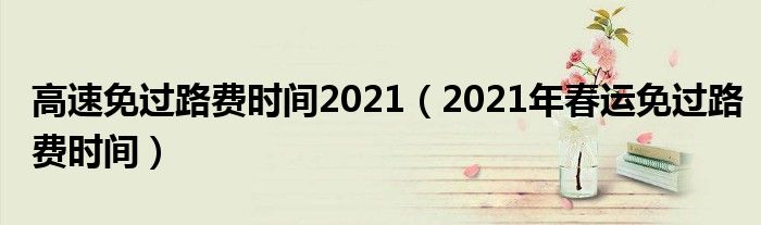 1,2021年春运免过路费时间:2021年春节高速公路免费时间是2月11日0时到2月17日24时,共7天。免费车型:七座以下小型客车(含七座)。普通公路以车辆通过收费站收费车道的时间为准,高速公路以车辆驶离出口收费车道的时间为准。免费道口实行不发卡抬杆放行,走ETC车道的免费车型,在免费期间高速也不收费,但切记下高速公路时,一定要走ETC道出收费站,如没有ETC道或误走了人工车道,一定要将ETC卡交给收费员处理,否则可能会在你下一次上高速时产生费用。