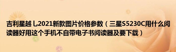 大家好,小常来为大家解答以下问题,对于吉利星越乚2021新款图片价格参数,三星S5230C用什么阅读器好用这个手机不自带电子书阅读器及要下载很多人还不知道,今天让我们一起来看看吧!