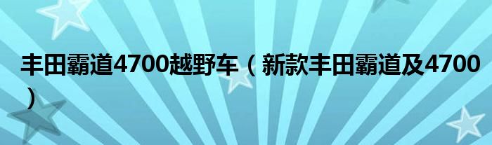 4700是丰田陆地巡洋舰的车型,排量4.7L,车价90万左右丰田霸道就没有4700这个型号,最大的才是4000型,4700是丰田陆地巡洋舰系列的车型. 至于和奥迪A6的比较,我感觉没有必要,毕竟不是同一类型的车吗,一个是越野车一个是轿车没什么可比性!