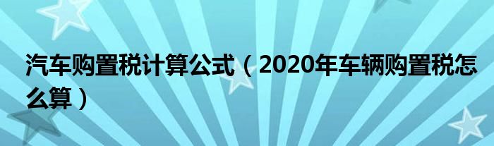 大家好,小常来为大家解答以下问题,对于汽车购置税计算公式,2020年车辆购置税怎么算很多人还不知道,今天让我们一起来看看吧!