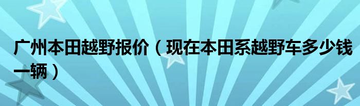大家好,小常来为大家解答以下问题,对于广州本田越野报价,现在本田系越野车多少钱一辆很多人还不知道,今天让我们一起来看看吧!