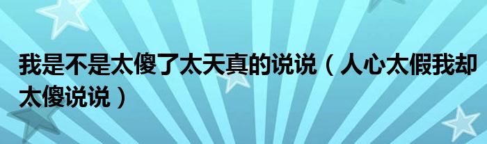 大家好,小晋来为大家解答以下问题,关于我是不是太傻了太天真的说说,人心太假我却太傻说说很多人还不知道,今天让我们一起来看看吧!