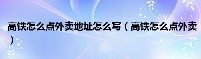 大家好,小晋来为大家解答以下问题,关于高铁怎么点外卖地址怎么写,高铁怎么点外卖很多人还不知道,今天让我们一起来看看吧!