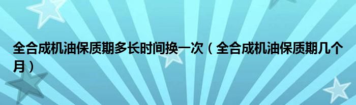 大家好,阳阳来为大家讲解下。全合成机油保质期多长时间换一次,全合成机油保质期几个月很多人还不知道,现在让我们一起来看看吧!