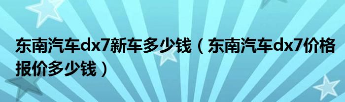 大家好,阳阳来为大家讲解下。东南汽车dx7新车多少钱,东南汽车dx7价格报价多少钱很多人还不知道,现在让我们一起来看看吧!