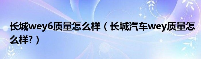 大家好,小美来为大家解答以上问题。长城wey6质量怎么样,长城汽车wey质量怎么样?很多人还不知道,现在让我们一起来看看吧!