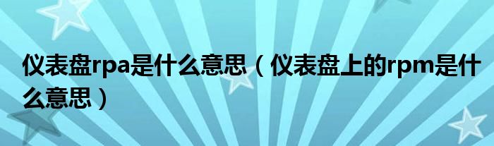 大家好,小美来为大家解答以上问题。仪表盘rpa是什么意思,仪表盘上的rpm是什么意思很多人还不知道,现在让我们一起来看看吧!