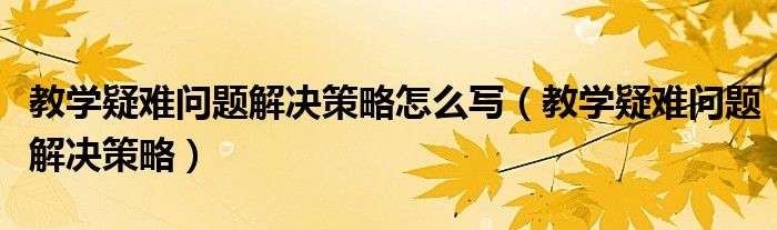 教学疑难问题解决策略怎么写(教学疑难问题解决策略)