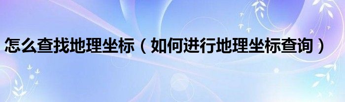 关于怎么查找地理坐标,如何进行地理坐标查询这个很多人还不知道,今天菲菲来为大家解答以上的问题,现在让我们一起来看看吧!