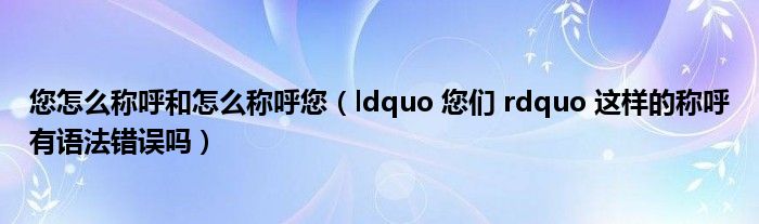 您怎么称呼和怎么称呼您(ldquo您们rdquo这样的称呼有语法错误吗)